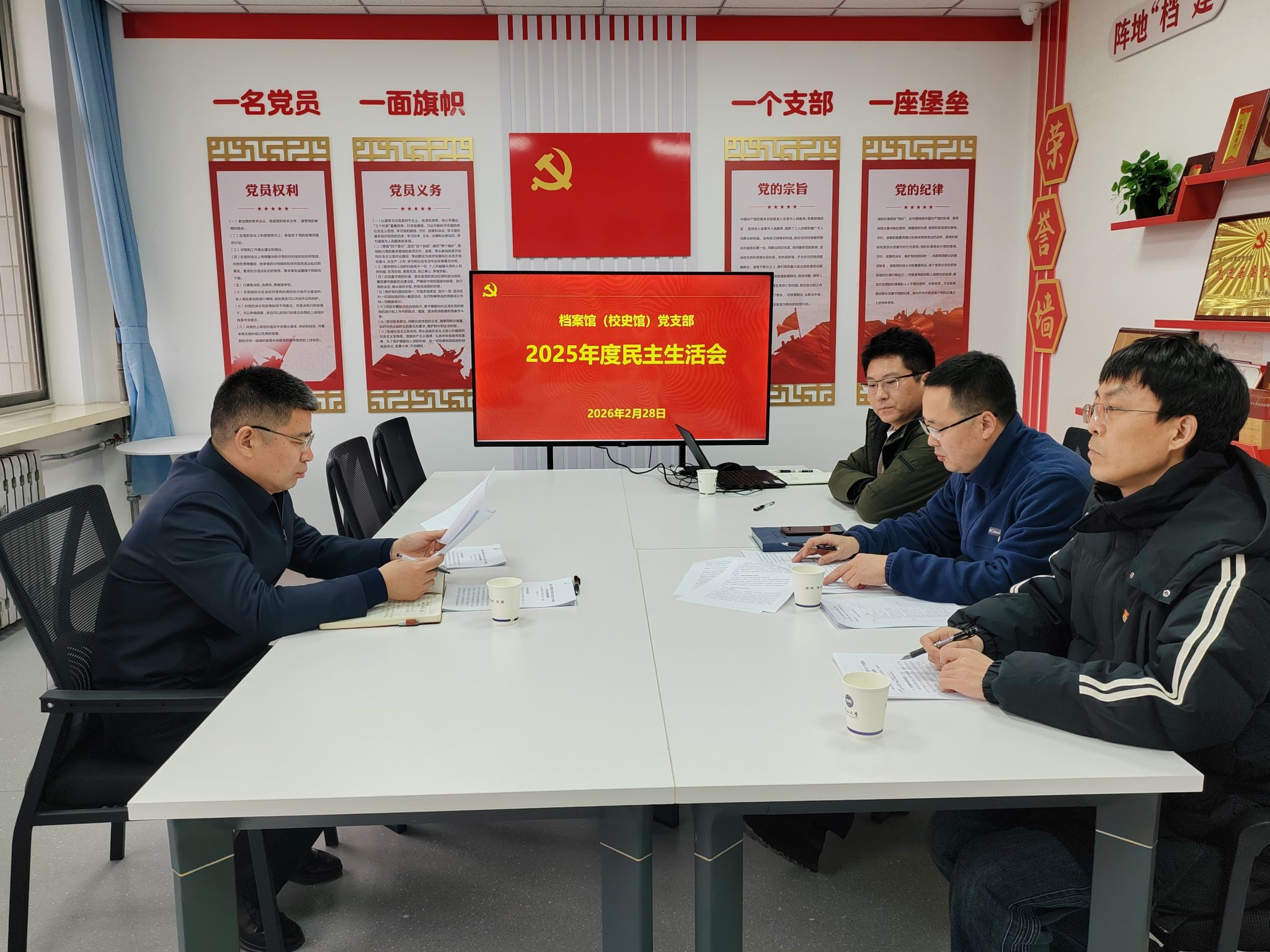 为深入学习贯彻习近平新时代中国特色社会主义思想和党的二十届四中全会精神,锲而不舍落实中央八项规定精神,推进作风建设常态化长效化,2月28日下午,档案馆(校史馆)领导班子在东校区图书馆四楼会议室召开2025年度民主生活会,校党委常委、副校长王跃华到会指导并点评,领导班子全体成员参加,部分支部委员、科级干部列席会议。会议由党支部书记逯宝峰主持。